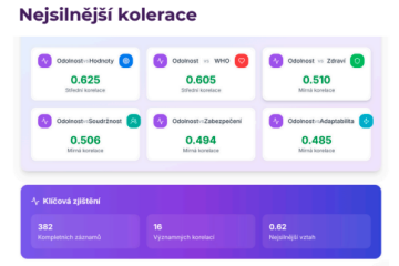 Tyto výsledky ukazují, že odolnost v této skupině nestojí ani tolik na vnějším komfortu, jako spíš na pevném vnitřním nastavení. Lidé s jasnými hodnotami, silnějším pocitem životního smyslu a lepší subjektivní pohodou patří zároveň k nejodolnějším. Pozoruhodné je také to, že důležitým „zesilovačem“ odolnosti jsou u vás kvalitní vztahy a zdraví, zatímco dovednosti či výhled do budoucna hrají roli menší. Celkově tak data ukazují skupinu, jejíž síla spočívá ve vnitřní soudržnosti, ne v okolnostech.