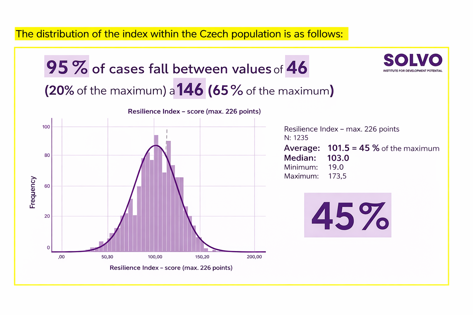 In recent years, increasing attention has been paid to the concept of resilience — the capacity to withstand stress, adapt to change, and maintain long-term functioning under conditions of uncertainty. We observe that resilience constitutes a unifying framework across many of the domains addressed by the Solvo Institute. This recognition led to the development of the Individual Resilience Index, the first comprehensive research initiative of its kind in the Czech Republic. The Index assesses resilience across eight distinct dimensions and identifies factors that strengthen or undermine resilience not only within Czech society (the research was conducted in multiple countries), including physical and mental health, value orientations, social ties, economic conditions, and adaptive capacity. The findings of this research are employed not only to enhance understanding of contemporary challenges, but also to inform public debate and support the development of solutions with tangible societal impact.