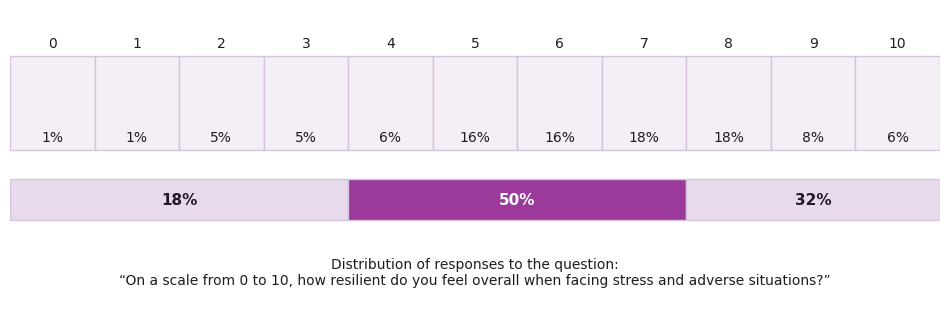 The Resilience Index was constructed by integrating several dimensions into a composite measure: overall resilience reflects performance across individual domains. At the same time, resilience can also be assessed subjectively by asking respondents directly: Do you perceive yourself as resilient, and to what extent? Individuals are asked to place themselves on a scale from 0 to 10. This self-assessment reflects each person’s own understanding of resilience and the relative weight they assign to its components. Some individuals emphasize physical fitness, others psychological strength, and others still skills and knowledge.