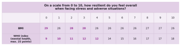 Finally, to what extent is subjective self-assessment of resilience associated with selected health indicators, such as BMI or the WHO mental health index? The results indicate that individuals who rate their own resilience as low are substantially more likely to experience problems related to being overweight as well as psychological difficulties.