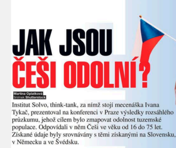 Institut Solvo, think-tank, za nímž stojí mecenáška Ivana Tykač, prezentoval na konferenci v Praze výsledky rozsáhlého průzkumu, jehož cílem bylo zmapovat odolnost tuzemské populace. Odpovídali v něm Češi ve věku od 16 do 75 let. Získané údaje byly srovnávány s těmi získanými na Slovensku, v Německu a ve Švédsku.